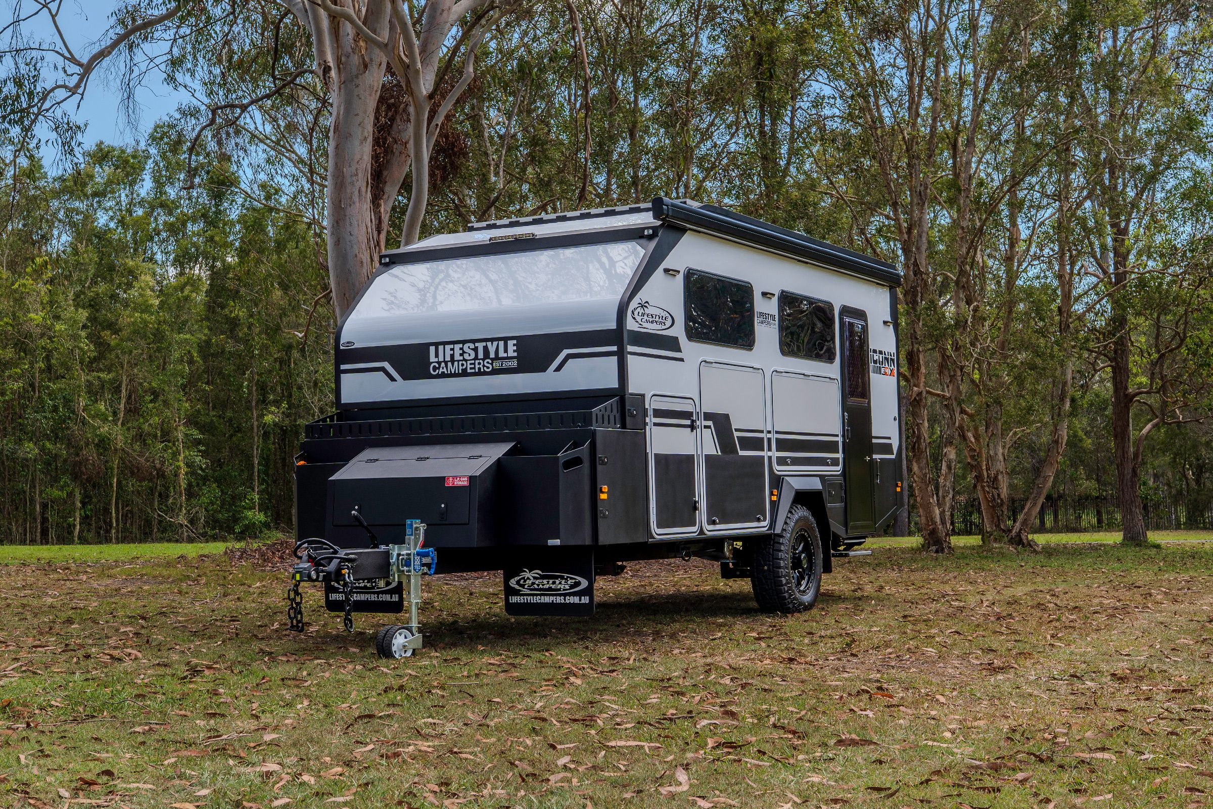 Despite the differences, both models retain the same overall width (2220mm including fixtures), body length (5400mm external) and 3000kg ATM. The Pop Top is fractionally heavier at 2330kg tare, with the High Top at 2250kg, providing excellent balance and controllability behind a wide range of touring vehicles.