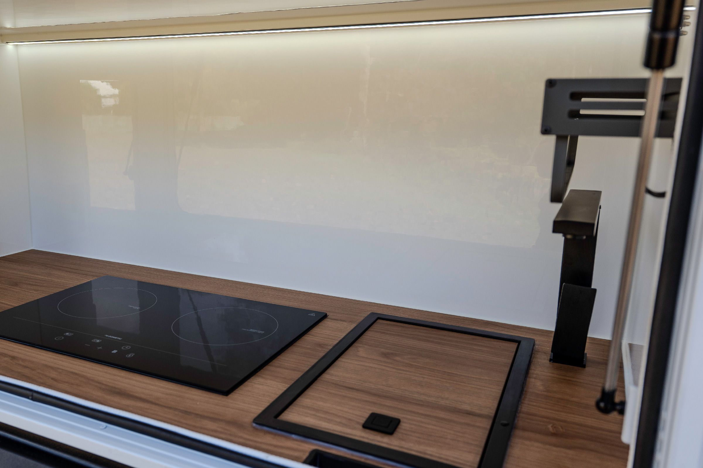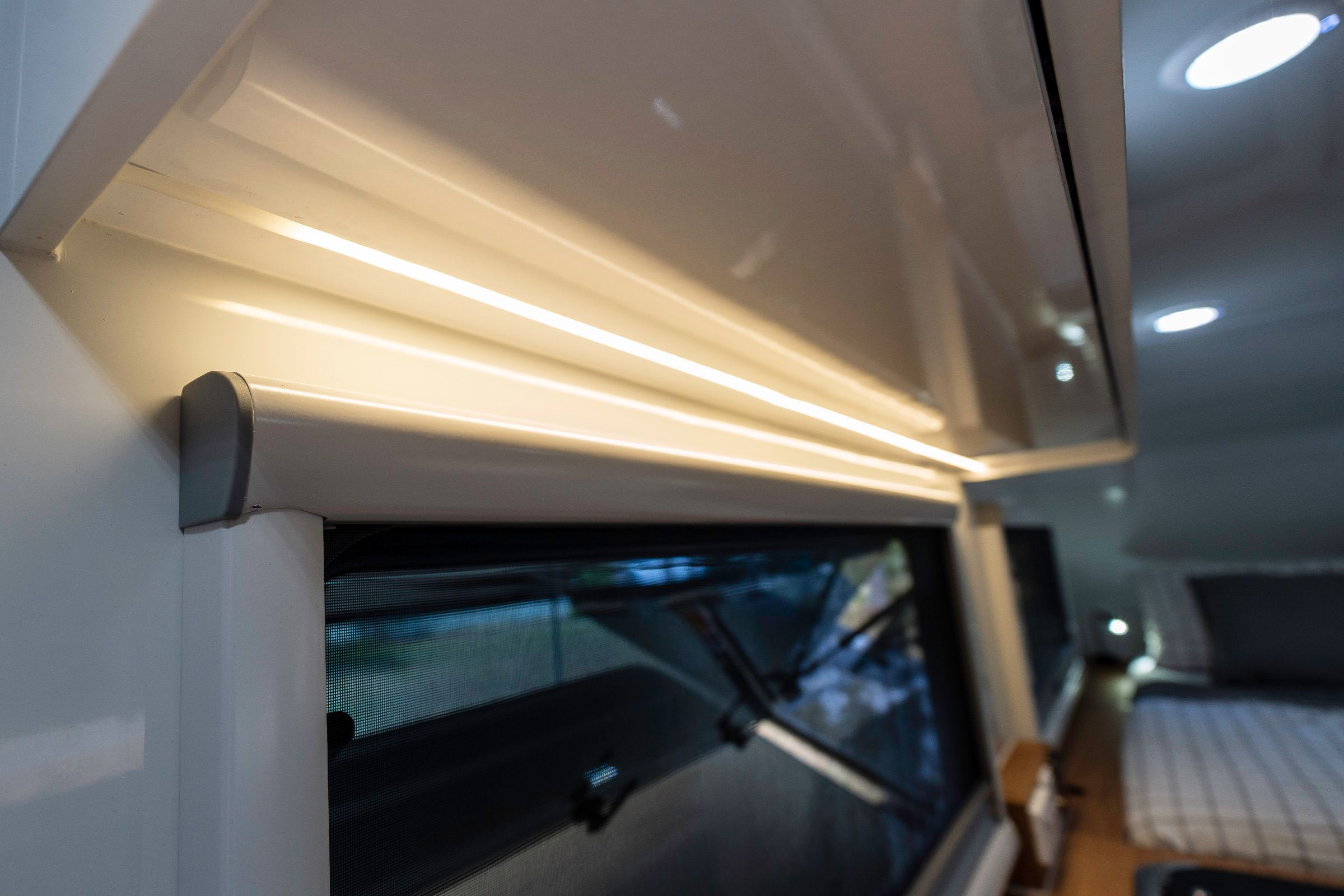 Both variants feature a wind-out awning and four drop-down stabiliser legs for quick campsite setup. The Pop Top’s automated roof lift makes arrival effortless, while the High Top eliminates roof setup entirely — allowing you to step inside and relax instantly.