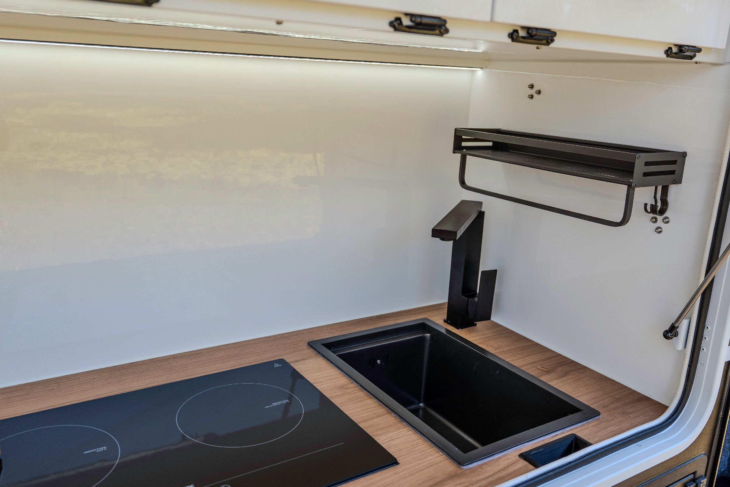 Both models come equipped with a full Victron energy system including MPPT solar regulator, DC–DC charger, 3000VA inverter/charger, Cerbo monitoring with touch display and a 300Ah lithium battery as standard. The Pop Top includes 2 x 350W panels (700W total), while the High Top upgrades to 2 x 440W panels (880W), providing an even stronger off-grid capability. Both models have the option to upgrade to more battery capacity with the Pop Top able to reach up to 600AH of lithium power and the High Top capable of storing up to 900AH of lithium power.