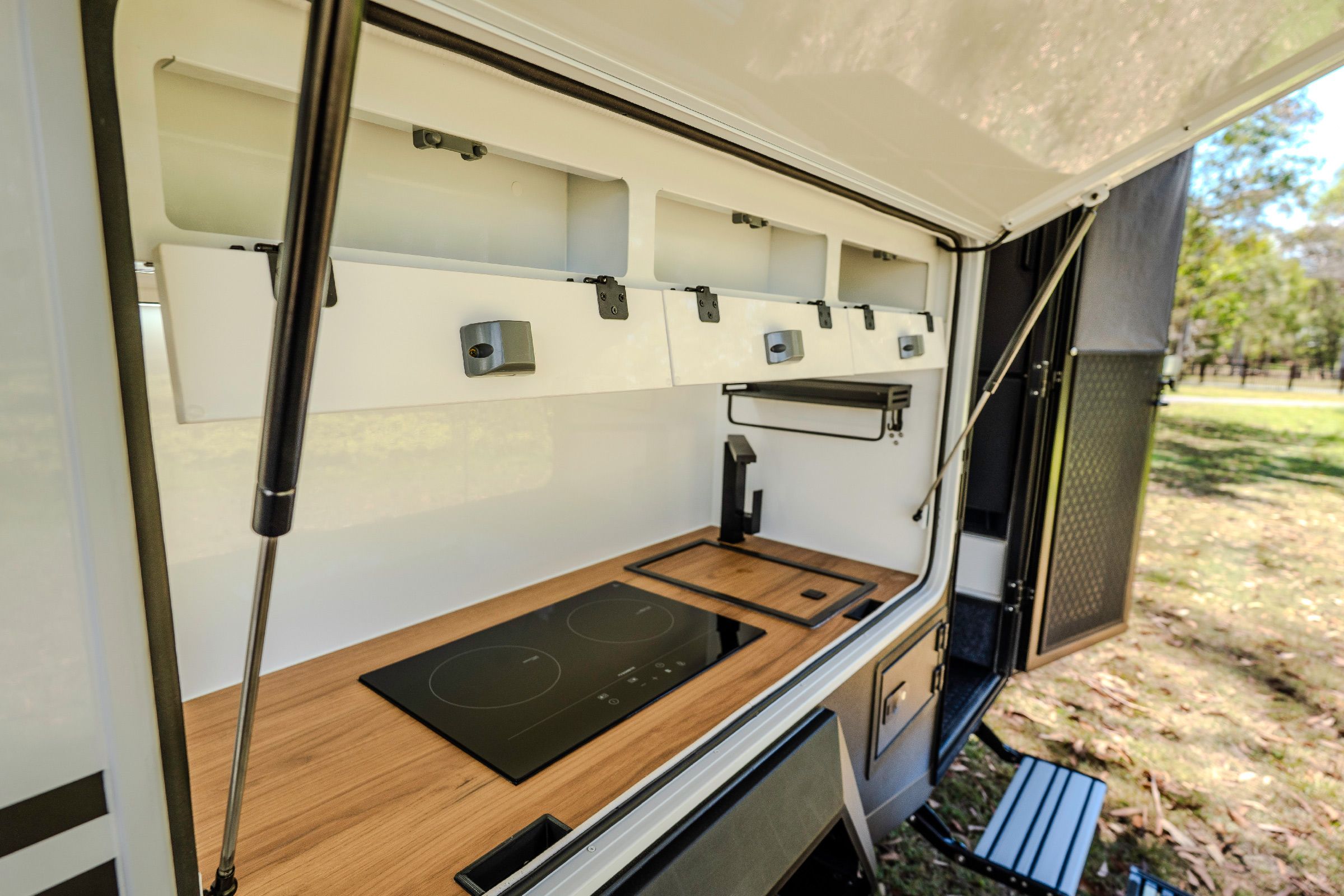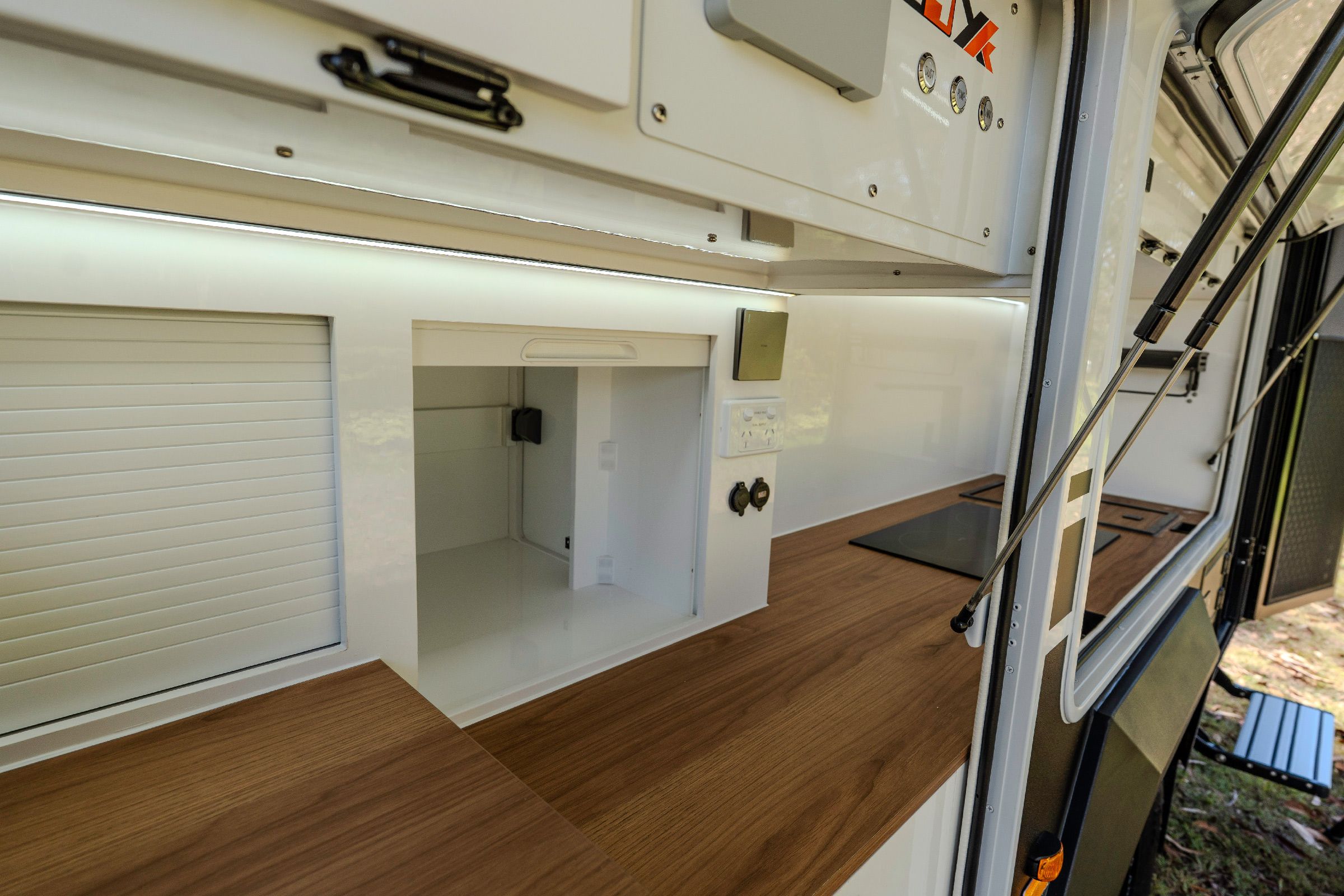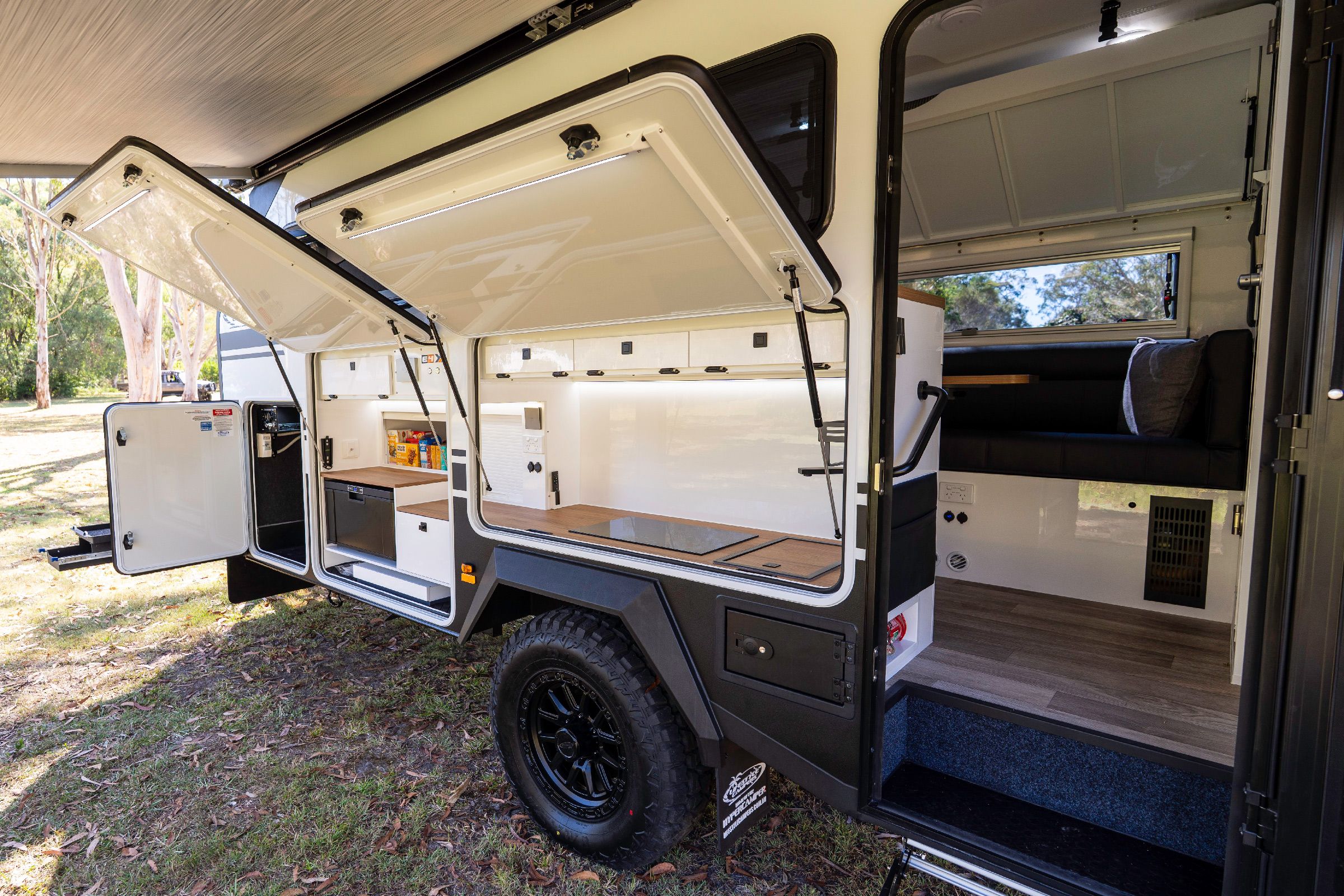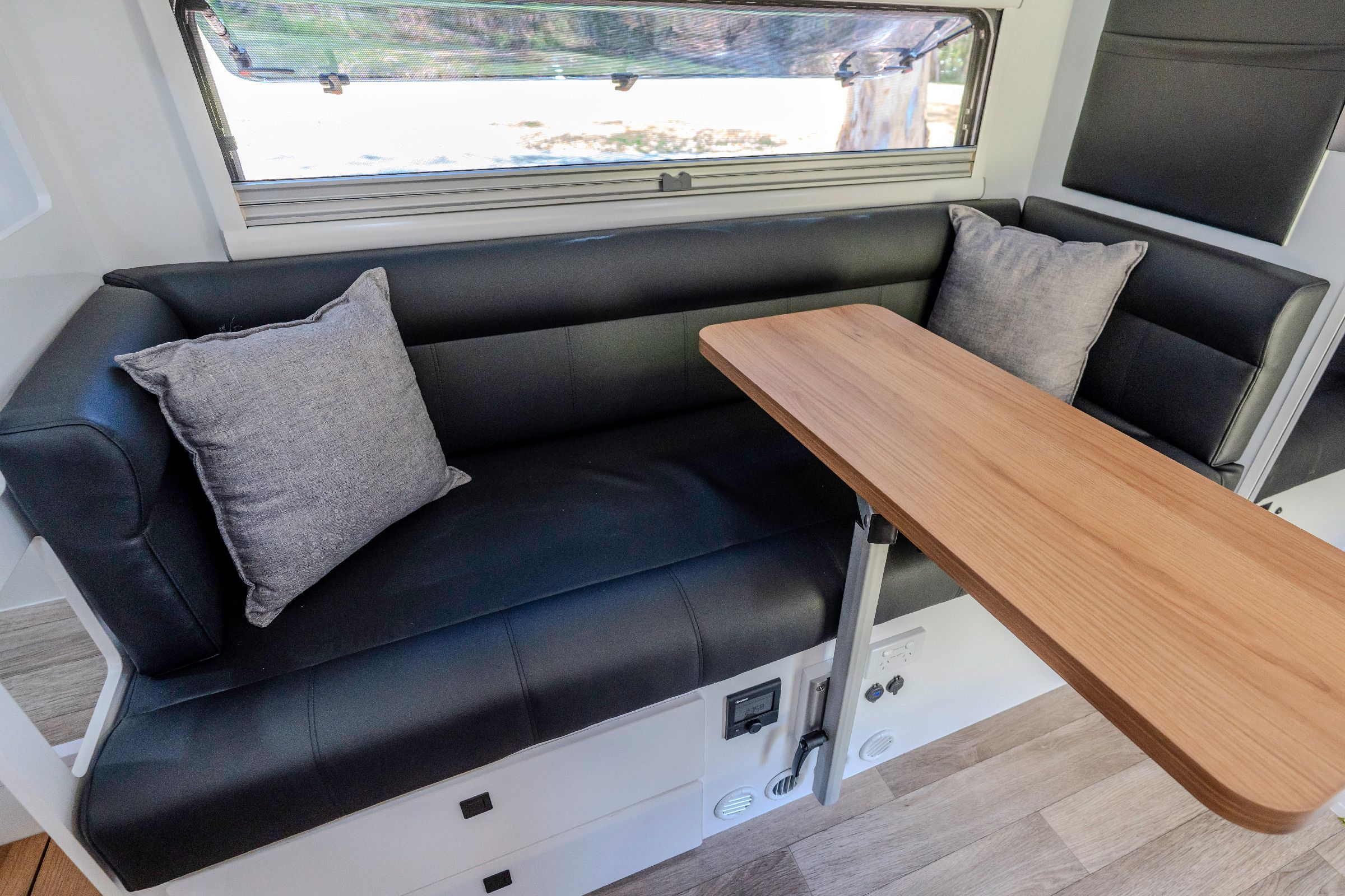 The Pop Top boasts a lower travel height of 2640mm for improved aerodynamics, fuel efficiency and access under low-clearance environments. The new High Top (solid roof) stands at 2940mm travel height, providing a permanent full-height interior that eliminates set-up time altogether and offers greater cabinetry and storage options. Both models retain identical widths and body lengths, ensuring ease of towing and true off-road manoeuvrability.