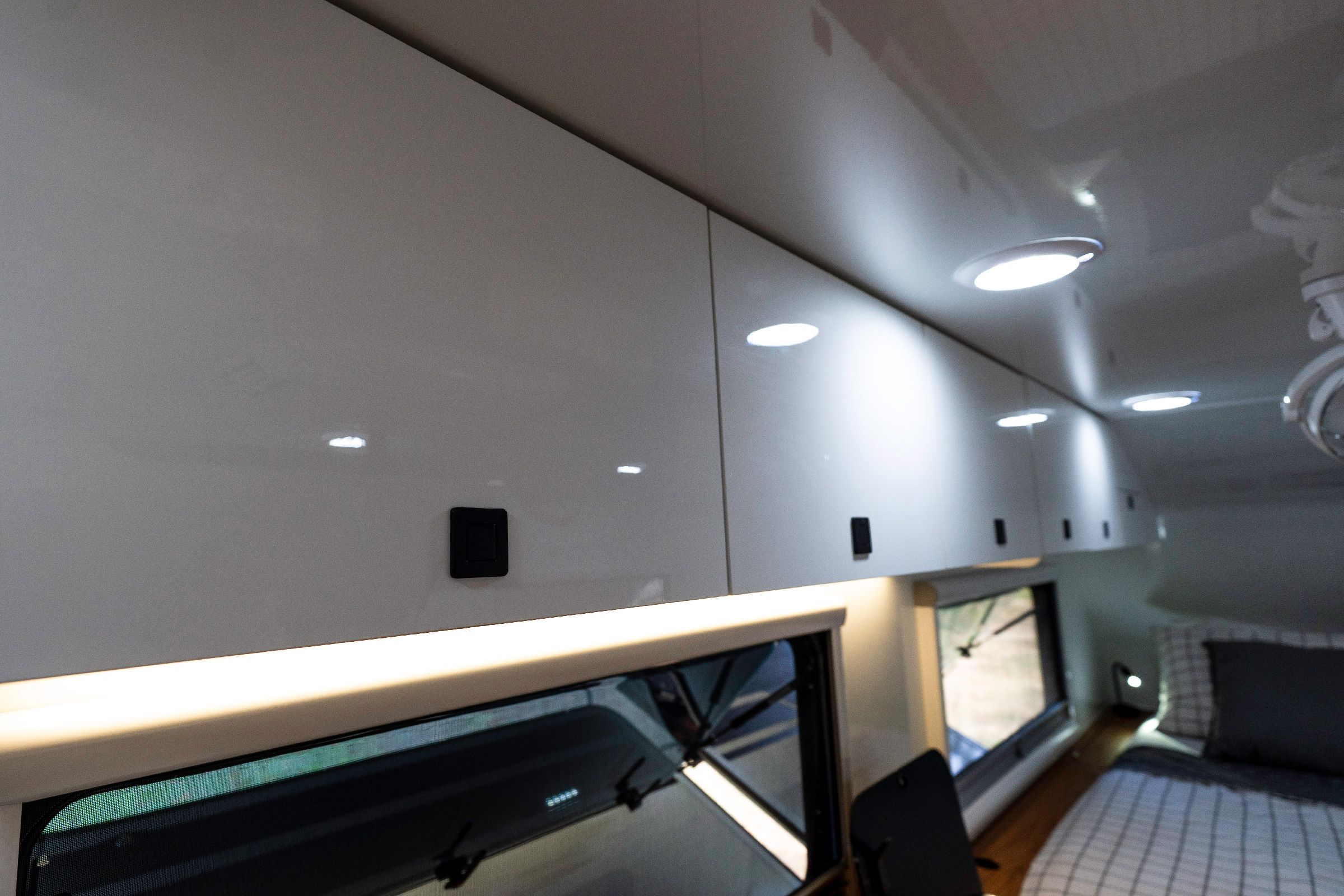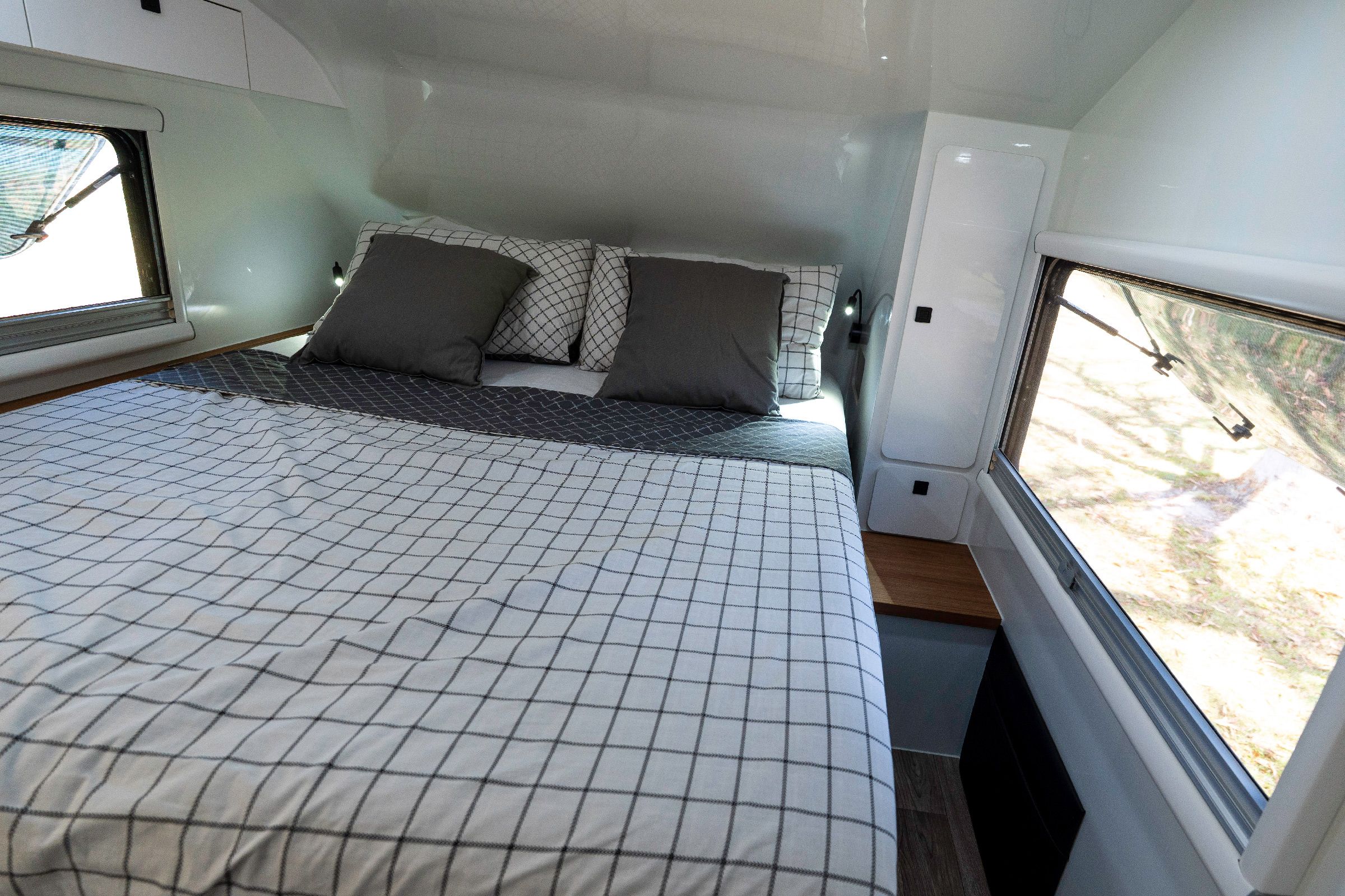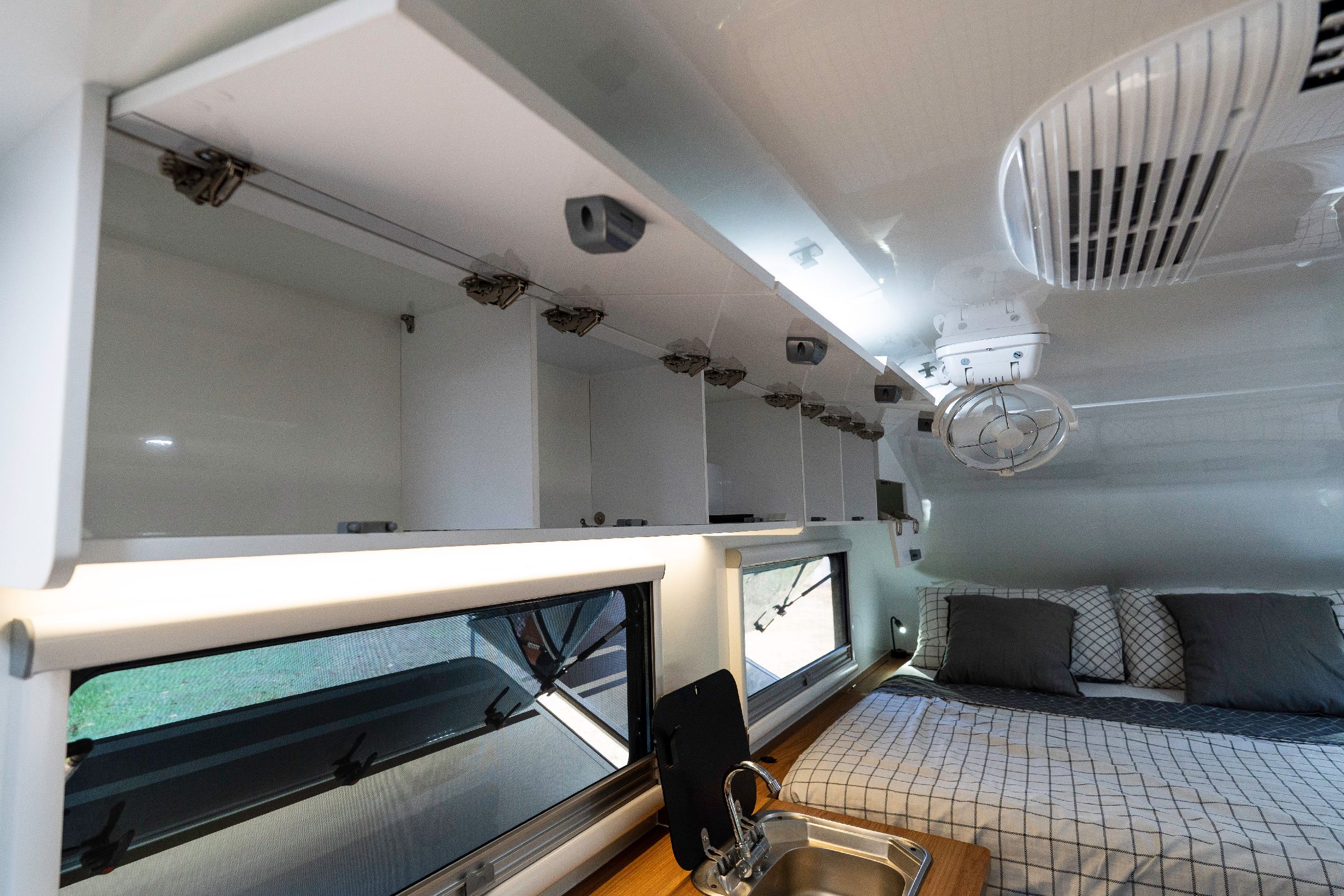 No matter the body, the Iconn E4 XK delivers 240L of fresh water across three 80L tanks, plus 80L grey water storage and diesel heating for both hot water and cabin air. Roof-mounted reverse cycle air conditioning is standard on both layouts, ensuring year-round comfort across every climate no matter where you are in the world.