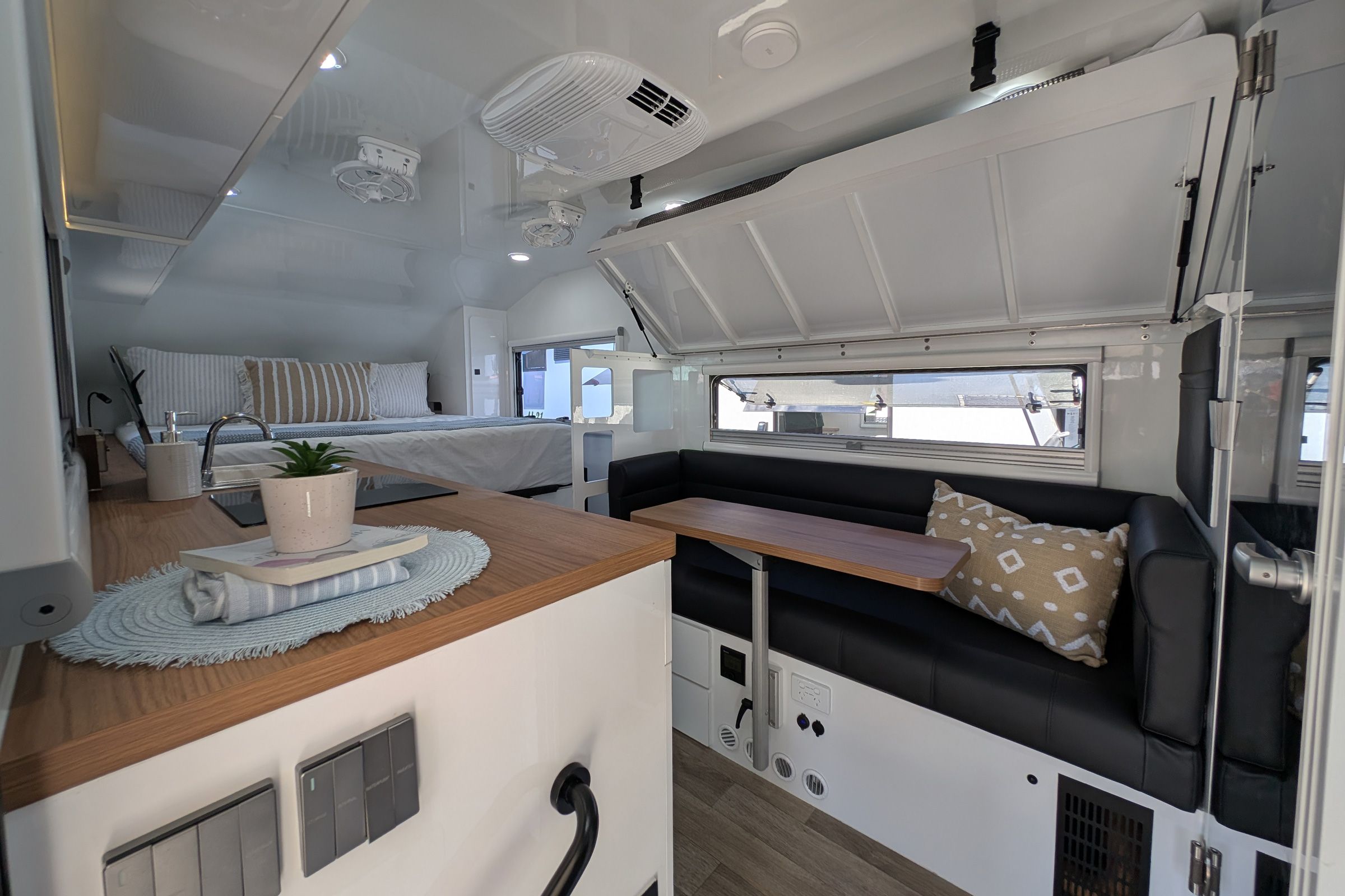 The Pop Top is perfect for adventurers who value lower towing height, aerodynamic touring and access to carports and garages. The High Top is ideal for those who prefer full-time internal height, premium storage internally and a conventional caravan feel. Together, they form a lineup that ensures no compromise — only choice.