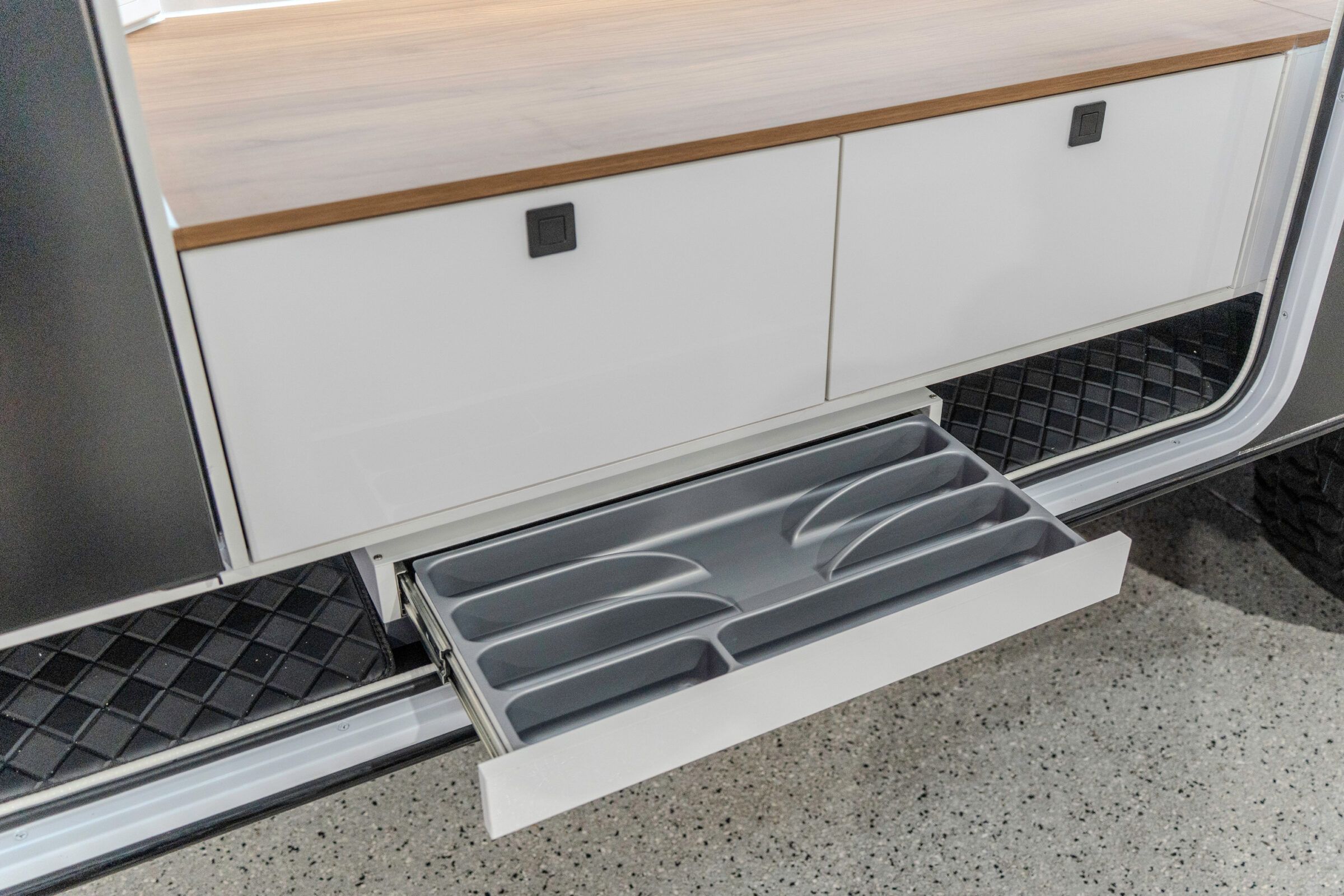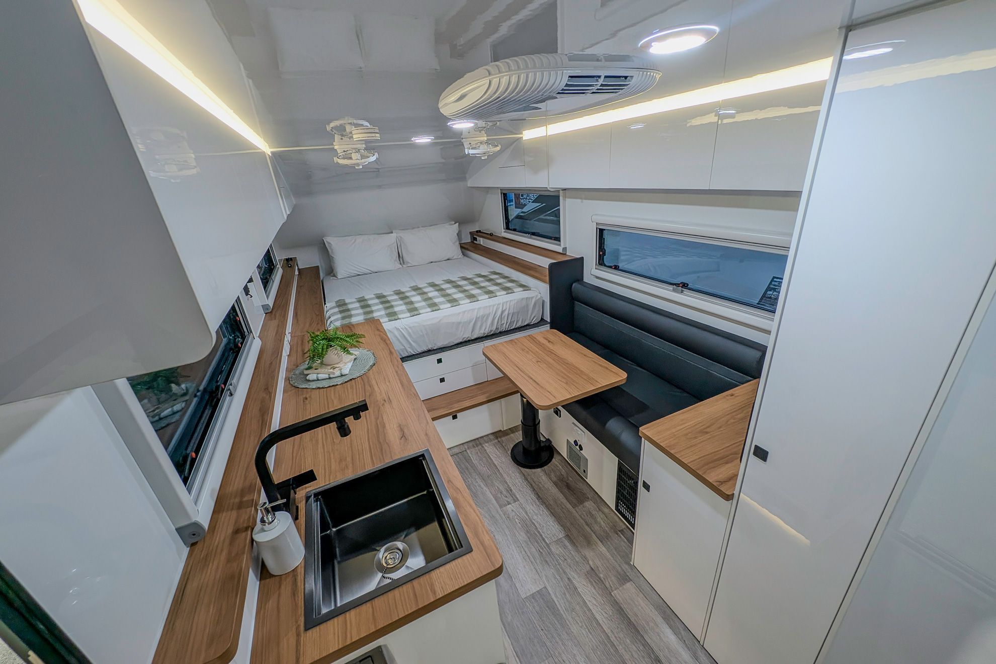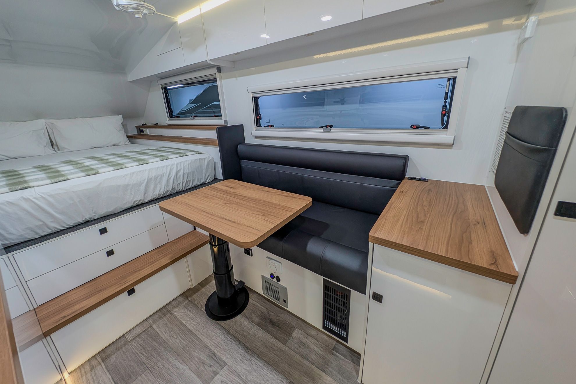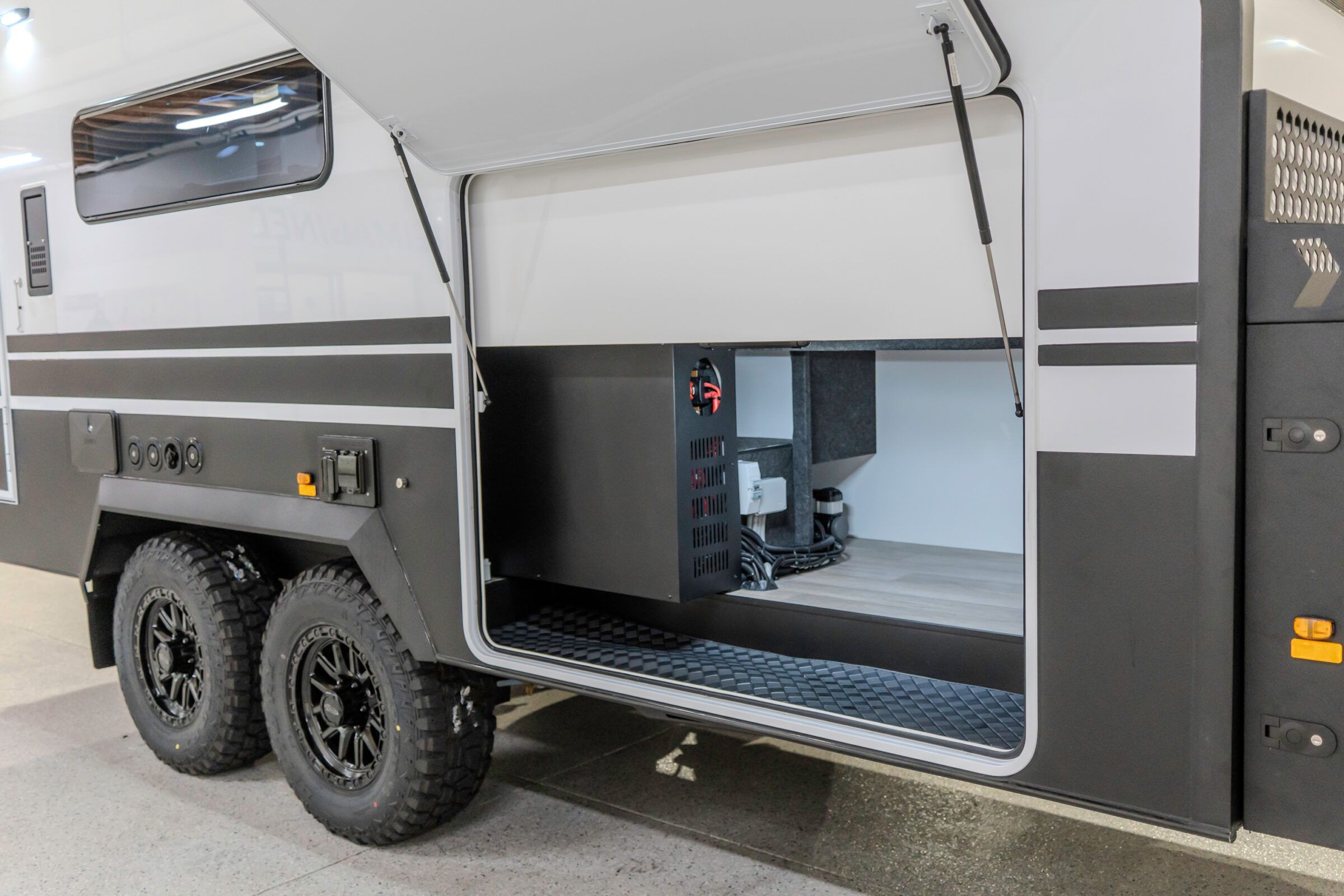 The Iconn XKT is built on a 150 mm galvanised steel chassis. The body, floor, and ceiling are formed from insulated aluminium composite panels, supported by filtered dust suppression and RV triple sealed hatches. Australian conditions are treated as the baseline, resulting in a structure that remains protected well beyond sealed roads.