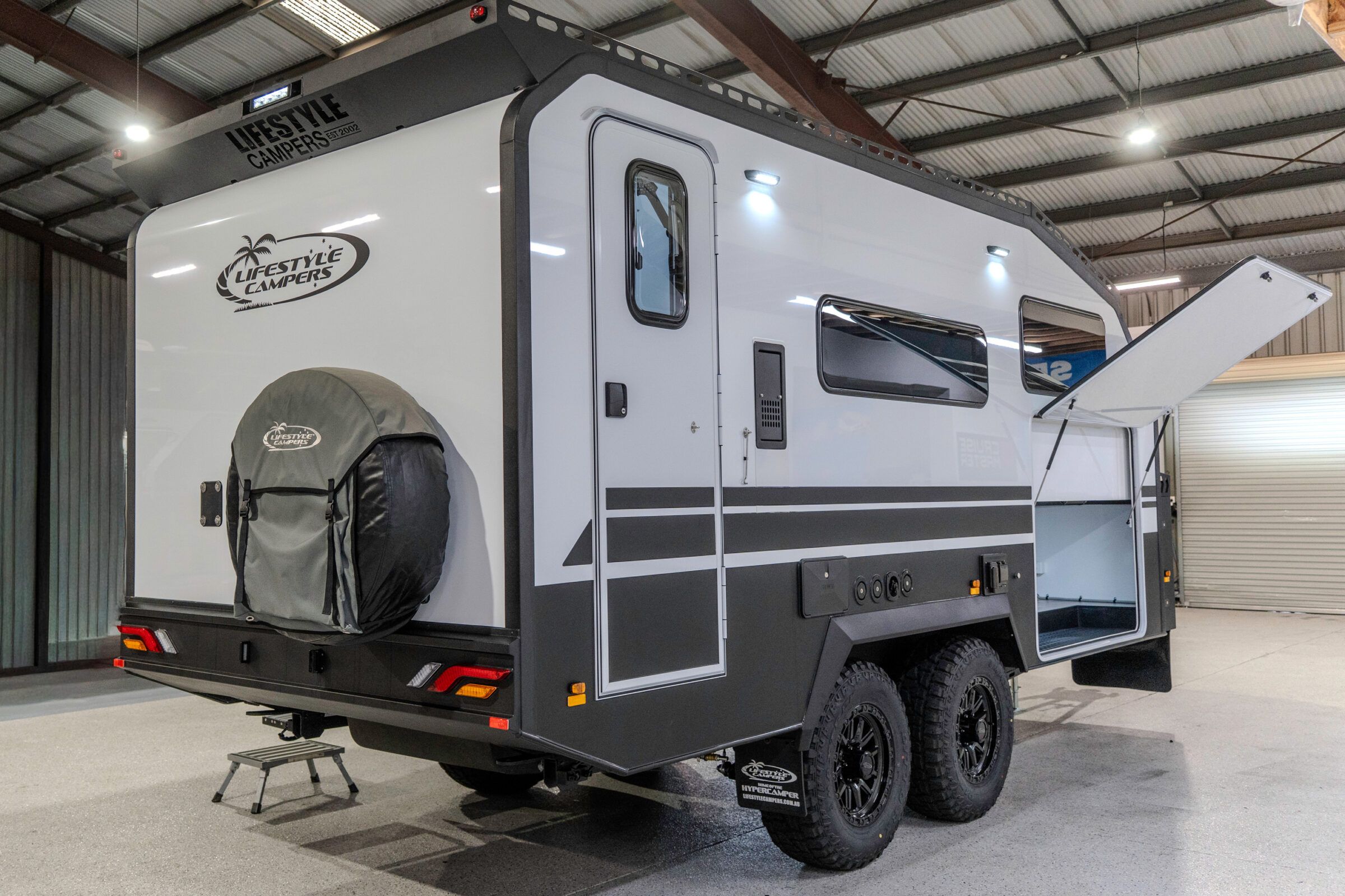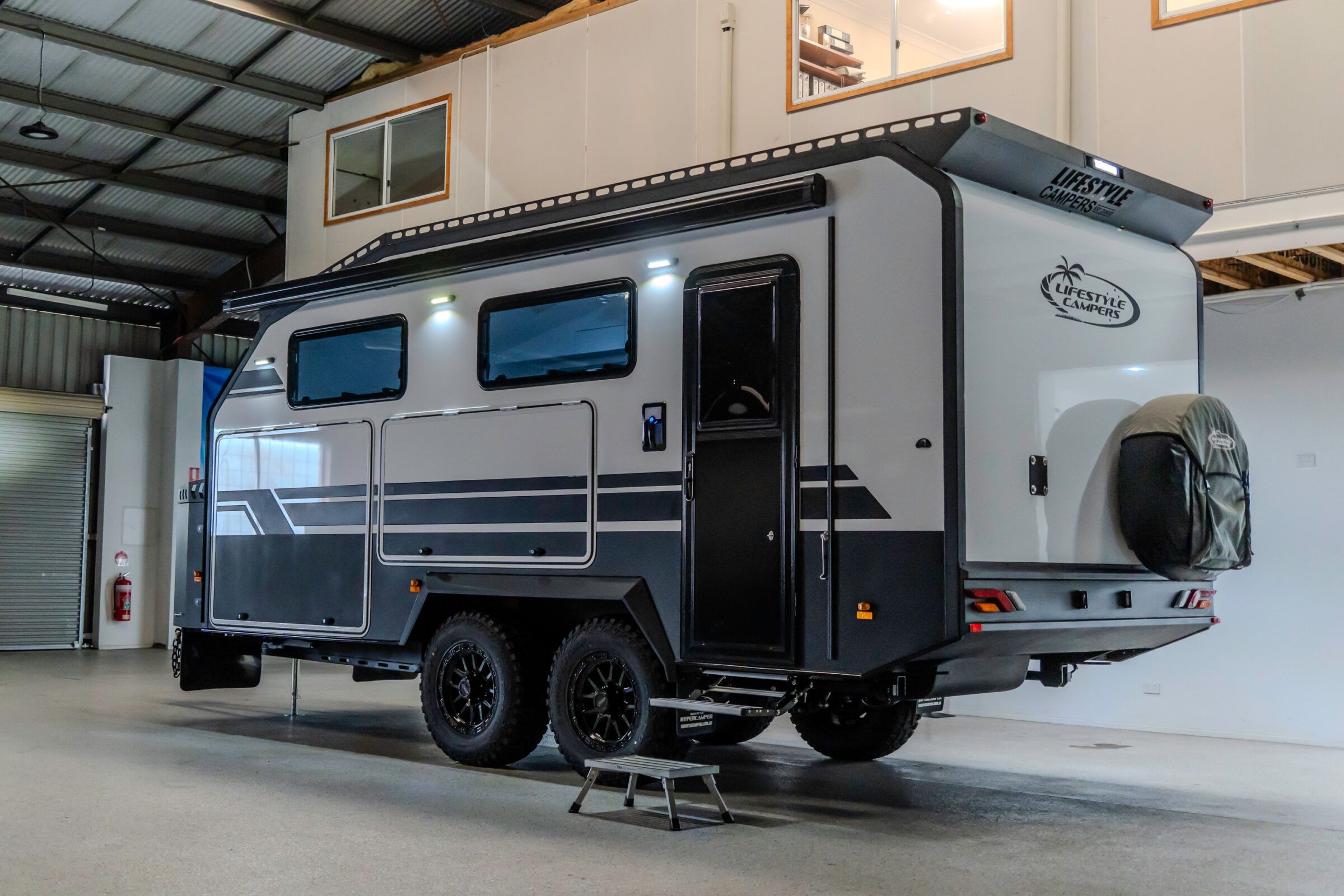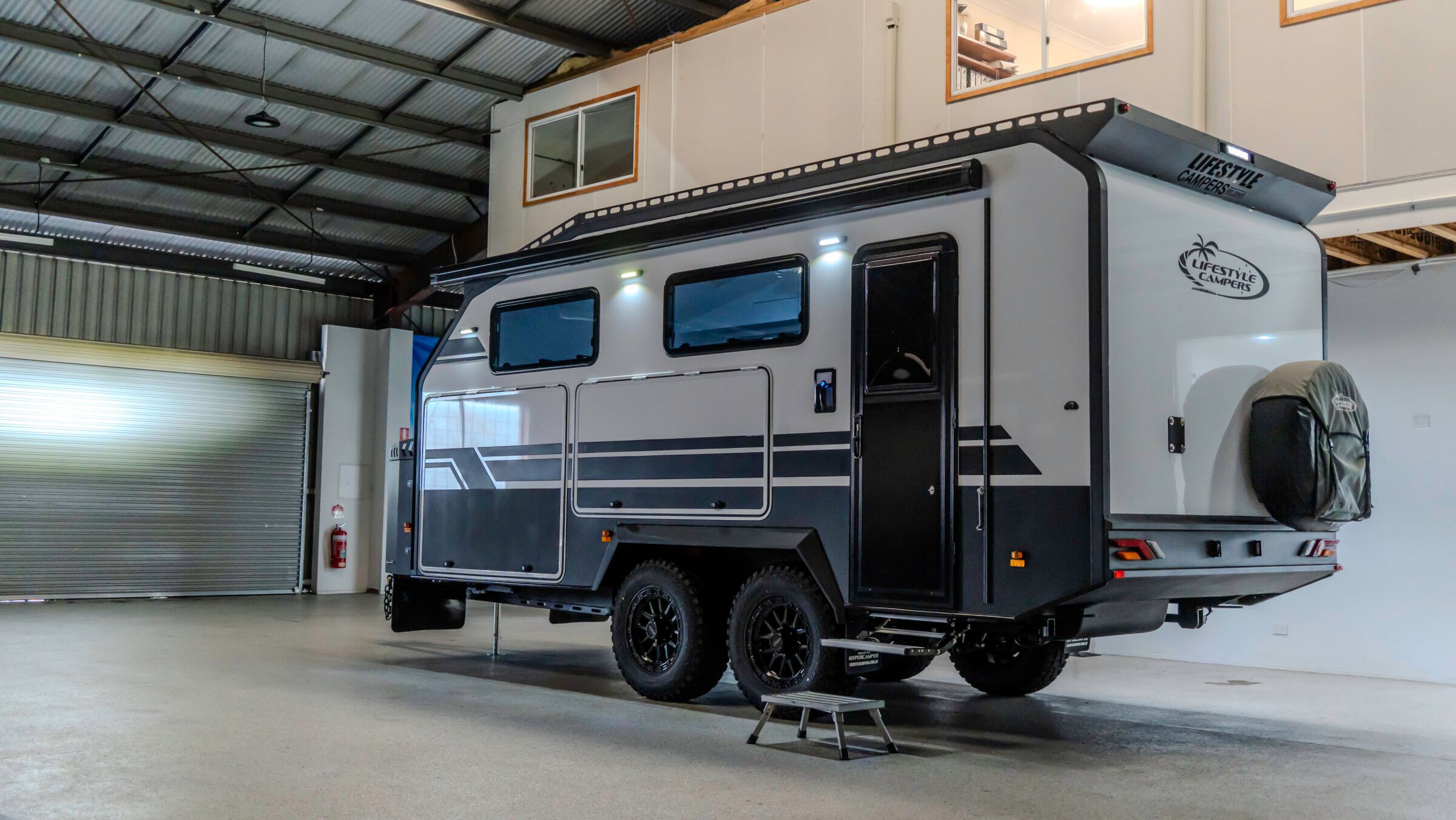 A premium tandem axle, high-top Hypercamper, designed for confident, long-range touring.