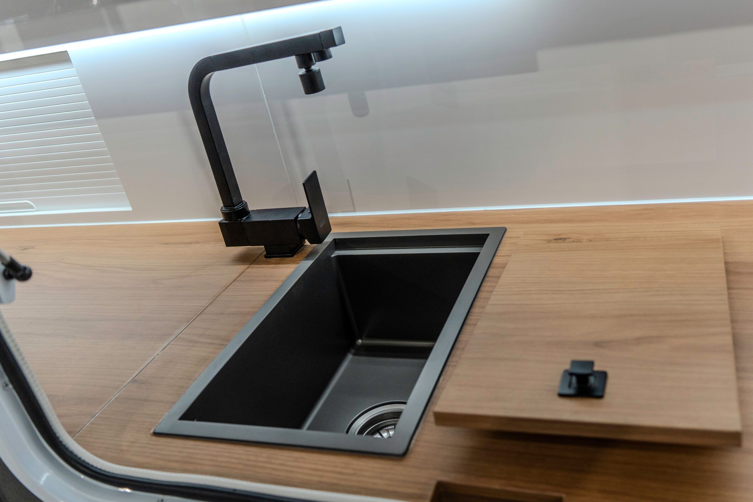 Water management is engineered as a complete system. Total fresh water capacity is 280 L, supported by a dedicated 40 L filtered drinking water tank and an 80 L grey water tank. A town water connection allows simple integration when available. Separate main and drinking water taps keep daily use intuitive in any environment.